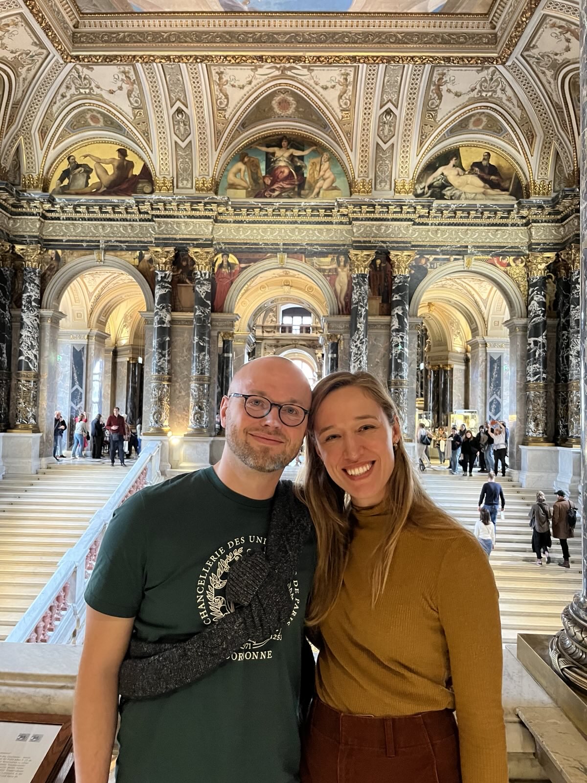 This was the beginning of one of many conversations that they had over the coming weeks. This eventually led to the above first photo together, on a street corner in Copenhagen, after a nice dinner to celebrate Nerissa turning in her thesis. A few months later, they took their first trip together to Vienna, Austria. Below is a picture taken at the Art History Museum (Kunsthistorisches Museum Wien).